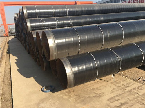 **層環(huán)氧粉末(FBE>100um),第二層膠粘劑(AD)170~250um,第三層聚乙烯(PE)2.5~3.7mm。三種材料融為一體,并與鋼管牢固結(jié)合形成優(yōu)良的防腐層。
